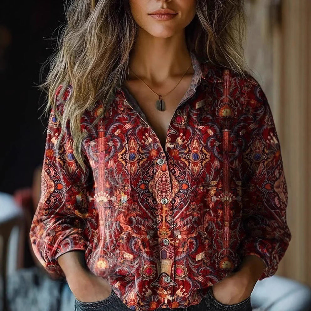 Women's Long Sleeve Printed Top – Cotton Blend Comfort Elevate your casual wardrobe with this...