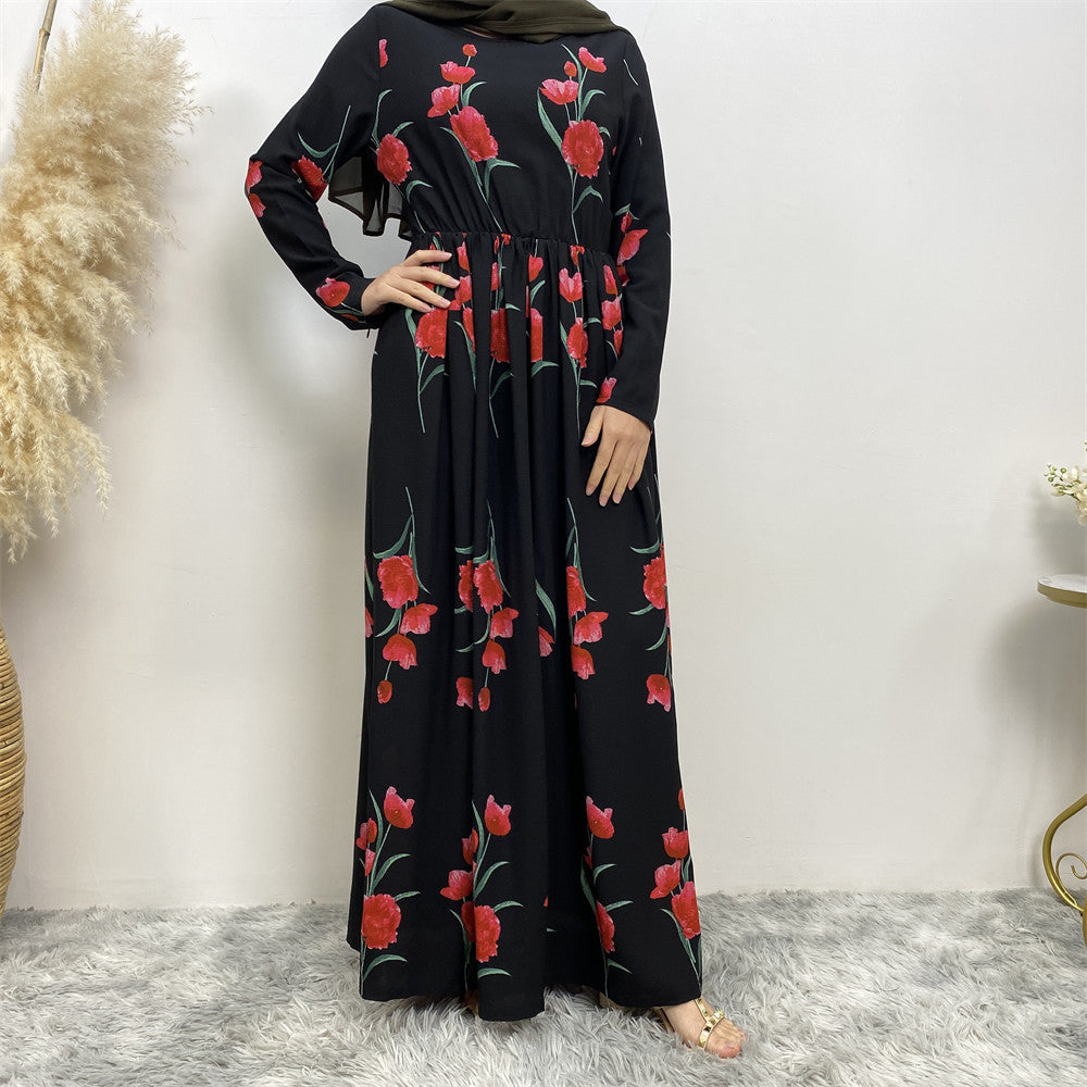 Floral Print Long Dress with Lace Detail – Elegant & Modest Add timeless elegance to...