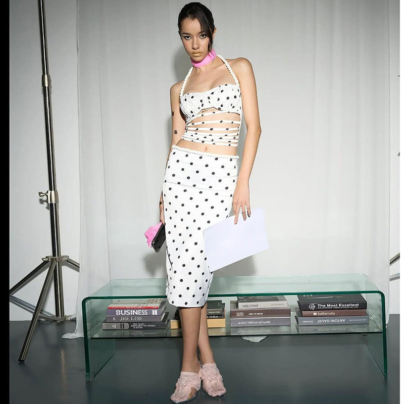 Sexy Polka Dot 2-Piece Set – Top & Skirt Step into elegance with this chic...