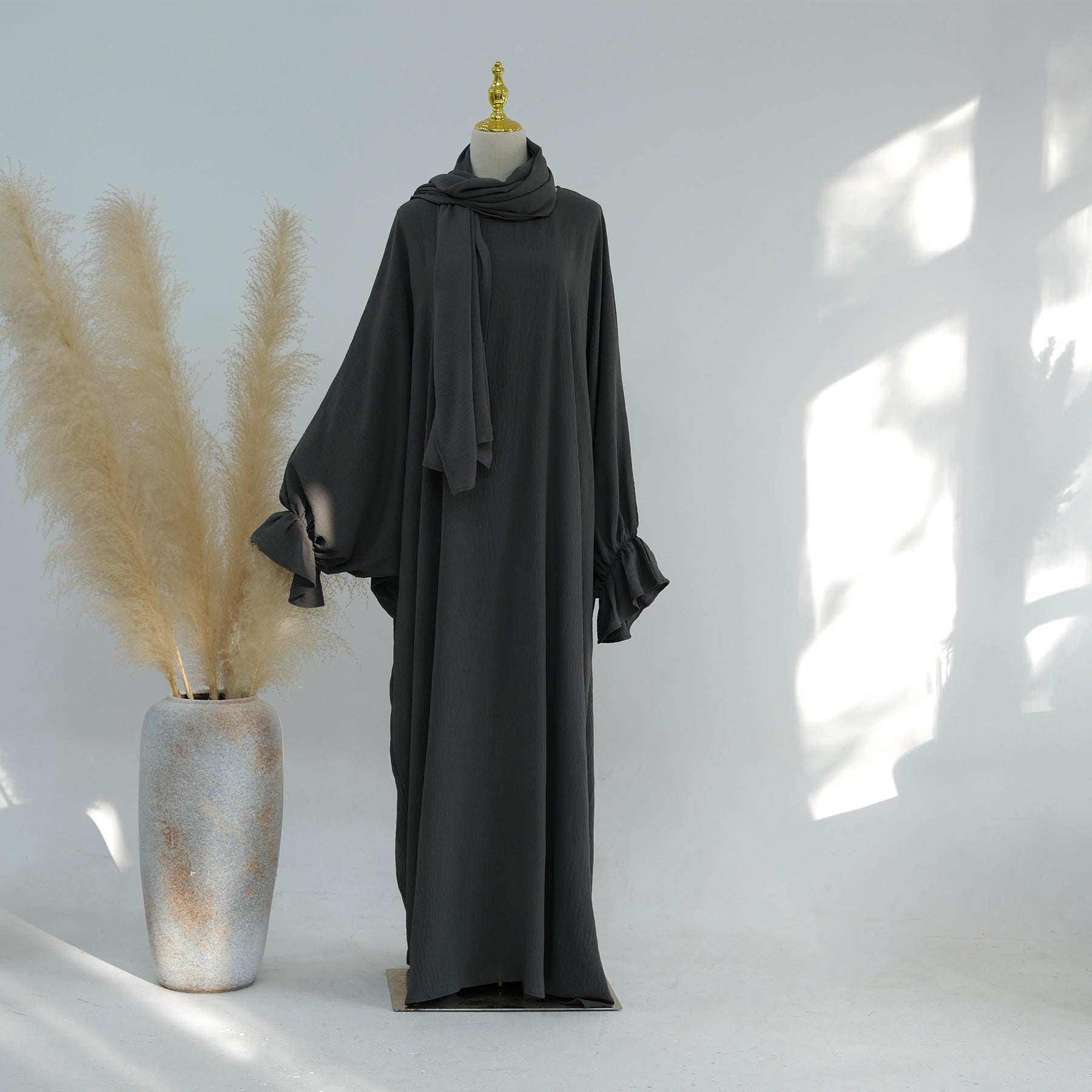 Step into a stylish, artistic look with this monochrome lantern-style dress. Crafted from high-quality polyester, it combines comfort and elegance with a unique retro flair. The set includes a matching headscarf to complete the ensemble.